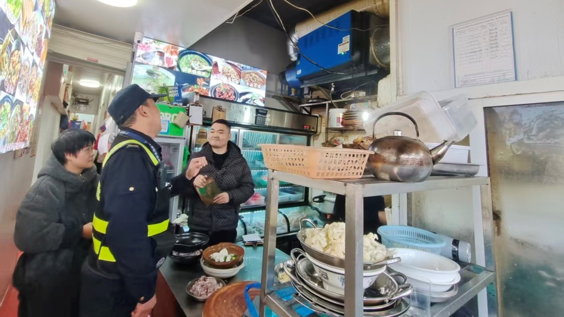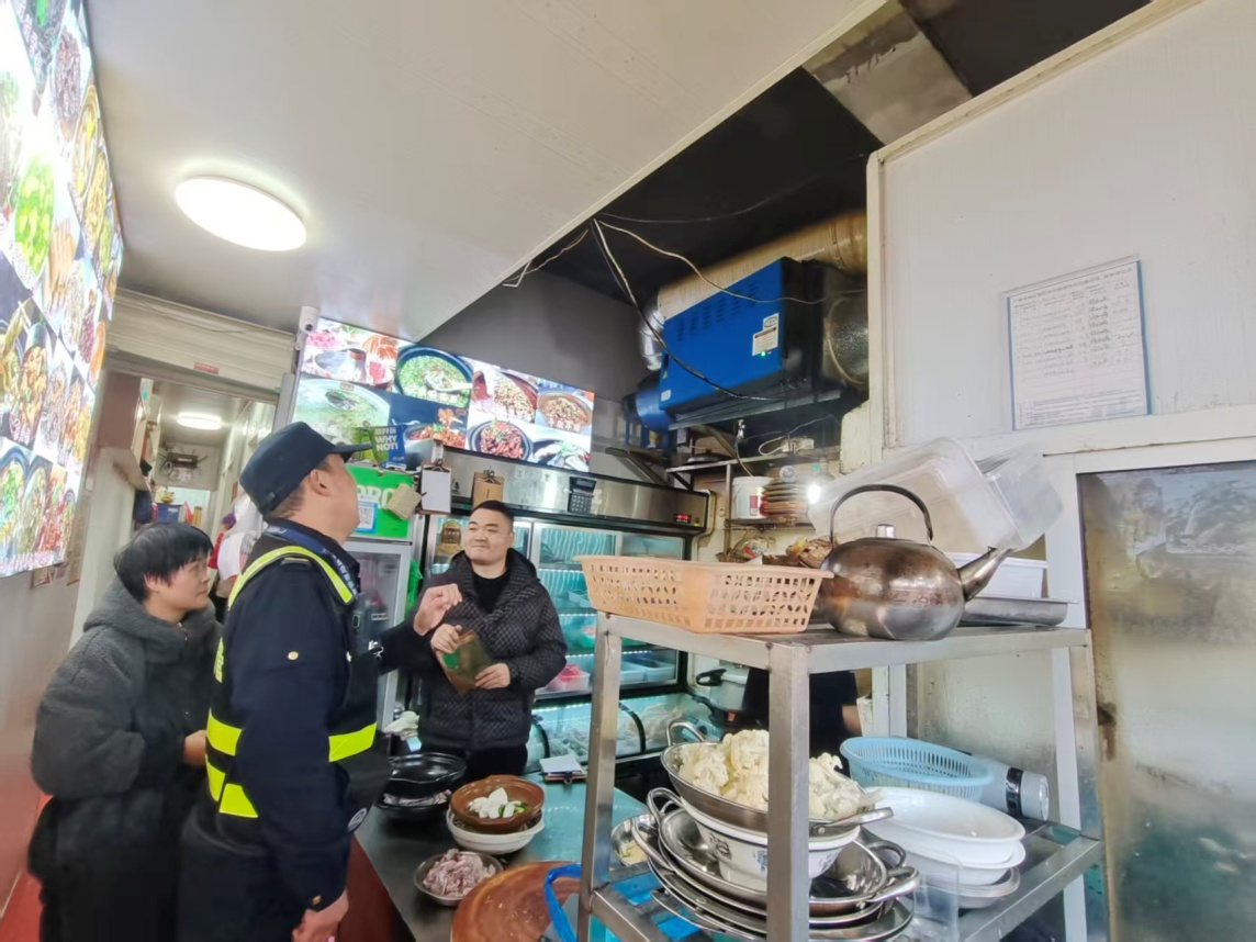 整治小组建立健全餐饮油烟管理台账,强化日常巡查频次与力度,对设施清洗、维护情况实行动态监管,构建“宣讲引导—动态监管—问题整改”长效管理闭环机制。对检查中发现的台账记录不完整、未按时清洗设备等问题,执法人员现场下达整改提示,督促商户立即整改,确保问题清零见底。